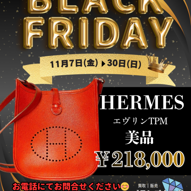こんにちは♪ブランズウエダです😊 @branz.ueda_ 今年も開催✨ ブランズウエダの🖤BLACK FRIDAY SALE🖤 今日は第7弾の商品をご紹介✨ HERMES🍊エヴリン...