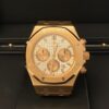 「ラグジュアリースポーツウォッチと称されるカテゴリーでも、非常に人気が高いグレーの文字盤を合わせた41mmロイヤル オークです。創意に富んだ新しいディテールは、幅広のインデックス、外周縁にプリントしたミニッツトラック、時計中央から離れた位置にある日付表示窓がございます。