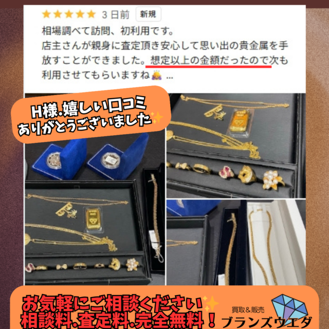 こんにちは♪ブランズウエダです😊 @branz.ueda_ 当店の貴金属高値買取の投稿を ご覧いただきご来店✨ たくさんの貴金属をお買取させて いただきました🉐‼️ 当店はご相談、...